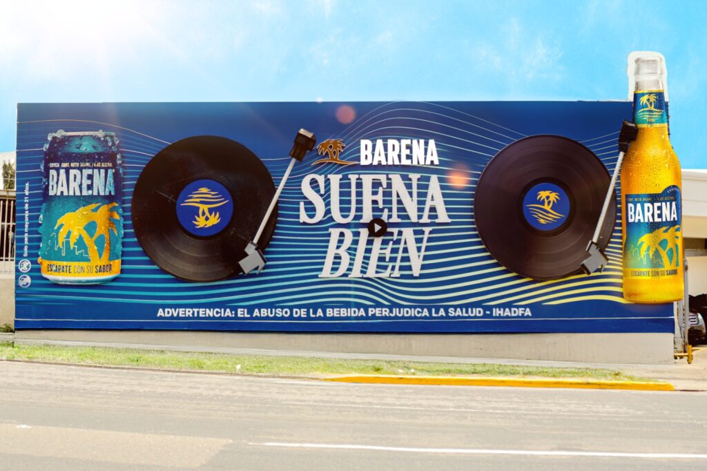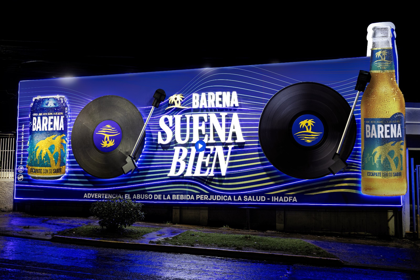 La valla, ubicada frente a City Mall de San Pedro Sula, representa una propuesta nueva dentro de la estrategia publicitaria de la marca. Se trata de una ejecución diferenciada con elementos tridimensionales, iluminación LED, imponentes discos de vinyl en movimiento y una botella y lata troquelada de Barena como ejes visuales. La instalación estará activa durante los próximos dos meses reflejando el enfoque musical de la campaña.