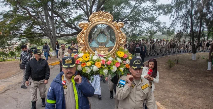 La delegación, integrada por bomberos uniformados, presentó sus respetos mediante una solemne procesión, ofrendas y una eucaristía especial en honor a la Virgen.