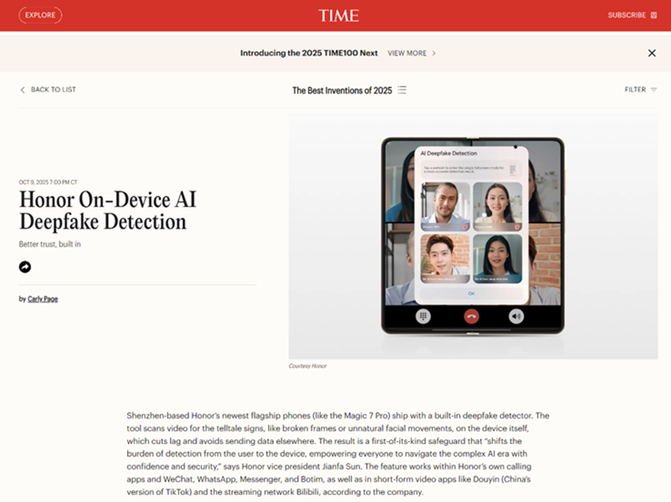Portada » HONOR recibe doble reconocimiento en los premios TIME Best Inventions 2025