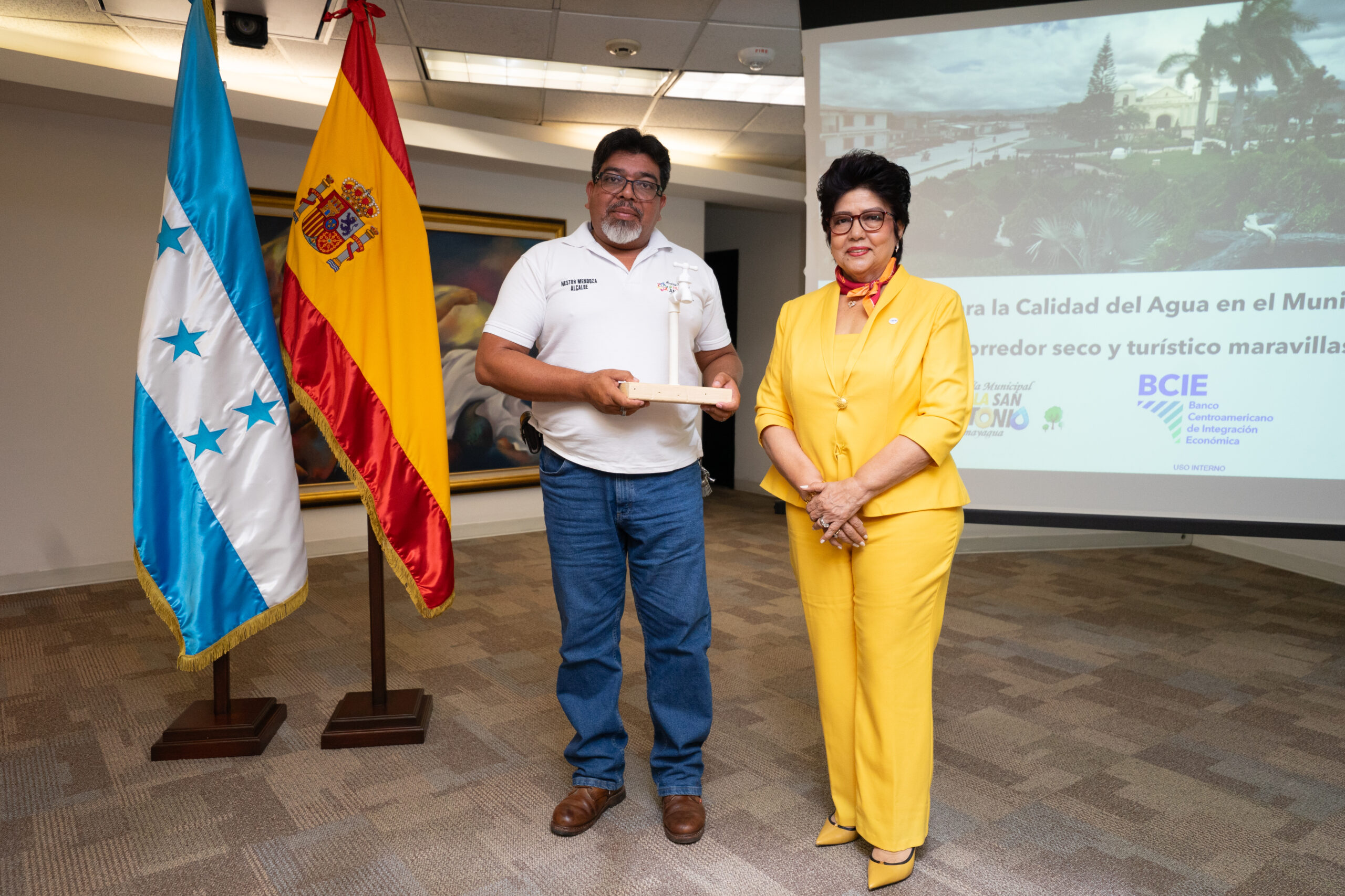 representantes del BCIE, de la Alcaldía de la Villa de San Antonio, y de las empresas