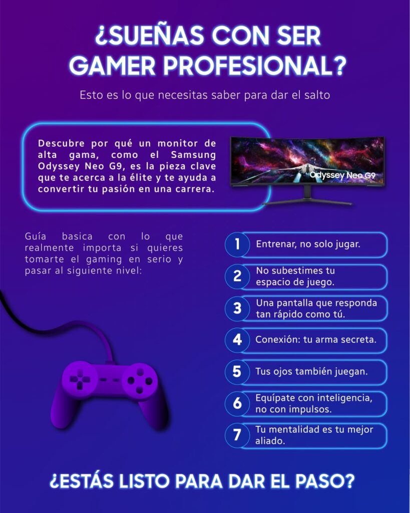 Este Día del Gamer puede ser el punto de partida para convertir la pasión en una meta real. Porque convertirse en gamer profesional es un maratón, no un sprint. Se necesita disciplina, enfoque y el equipo adecuado, como los monitores Samsung, diseñados para quienes viven el juego sin medias tintas.
