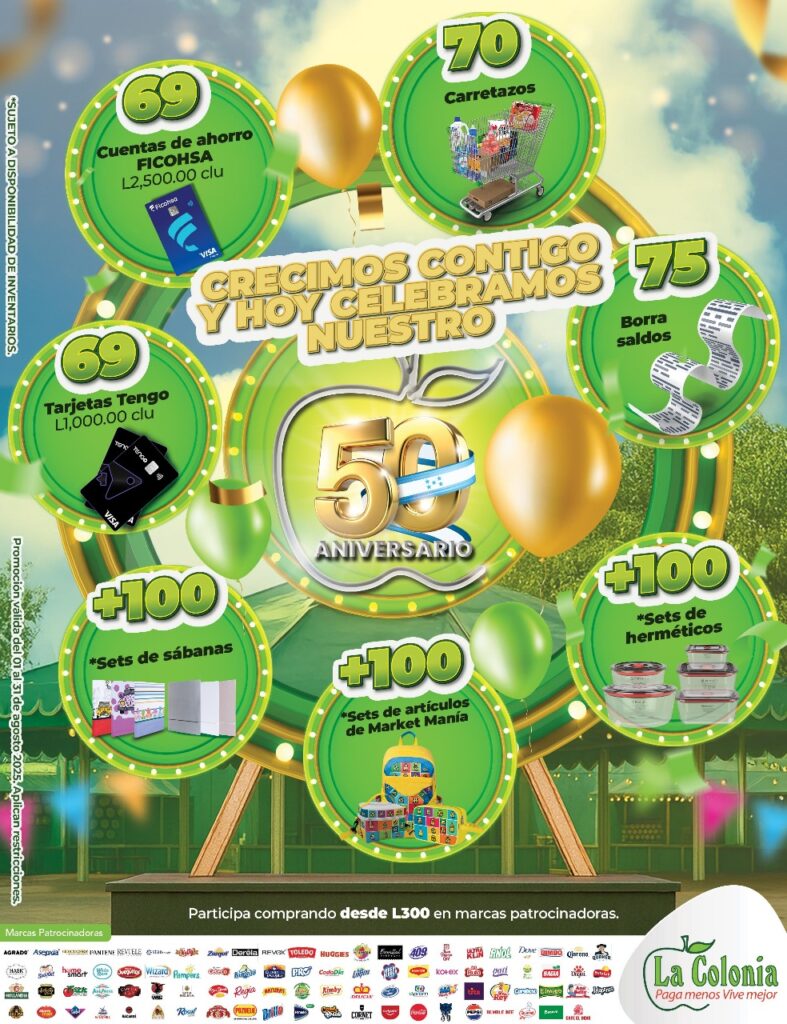 Inicia agosto, y con el, un mes muy especial para Supermercados La Colonia. Medio siglo junto a las familias hondureñas merece una celebración inolvidable. Por eso, la cadena líder, lanza su promoción de 50 años: “Crecimos contigo y hoy celebramos nuestro 50 aniversario”, una iniciativa pensada para premiar la lealtad de quienes han hecho posible esta historia.