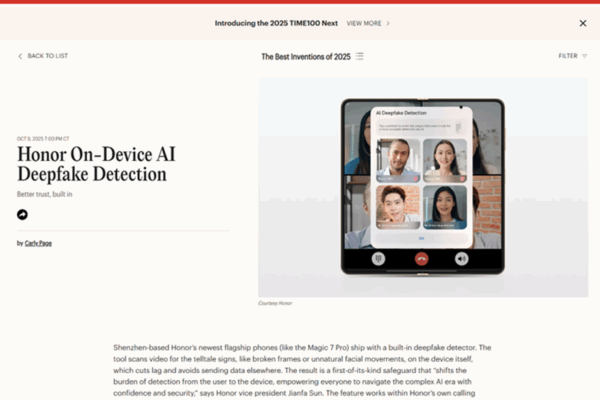 HONOR recibe doble reconocimiento en los premios TIME Best Inventions 2025
